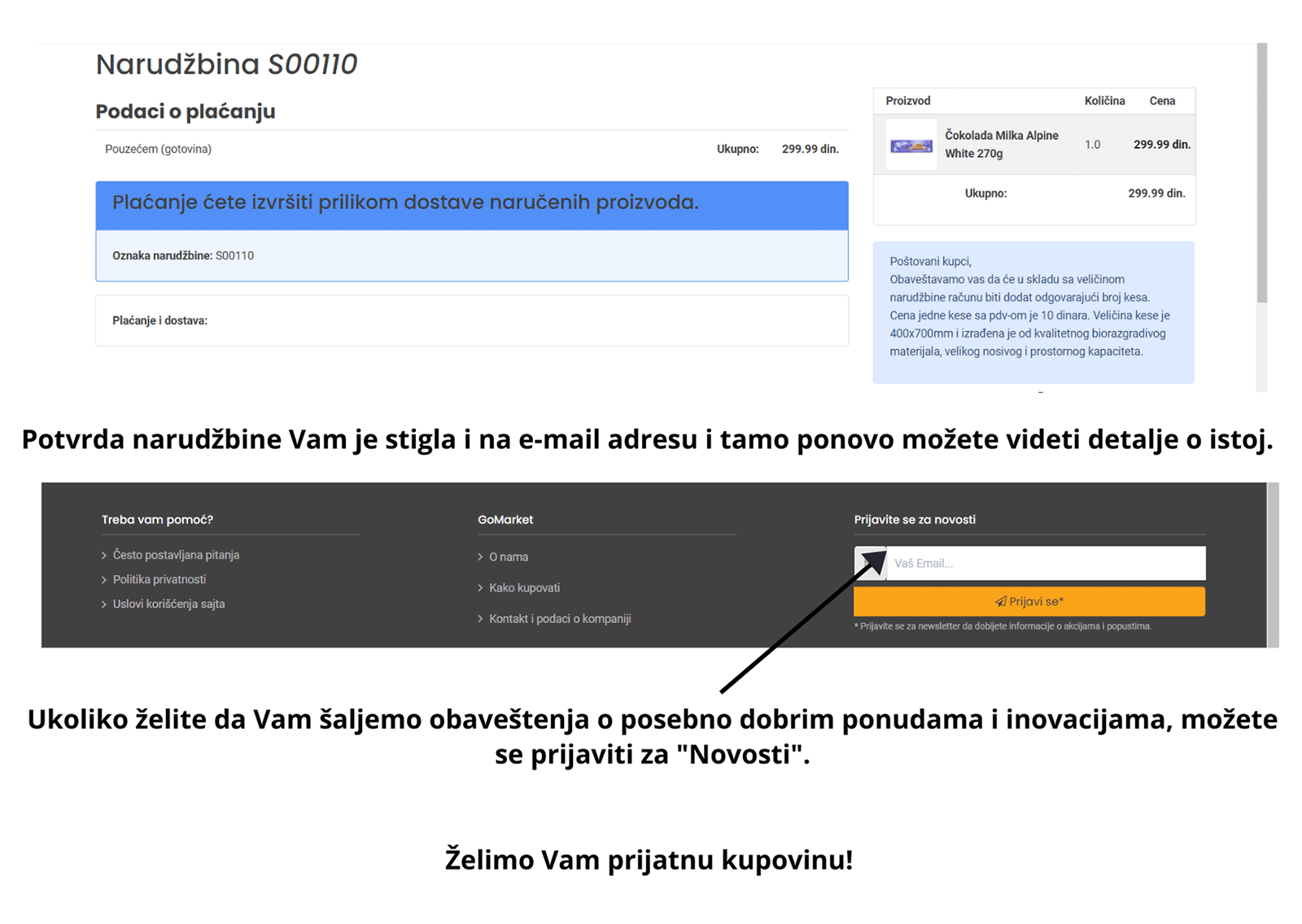 Ovaj sajt koristi kolačiće. GoMarket koristi neophodne i statističke kolačiće. Oni se koriste kako bi Vam pomogli da se krećete po web lokaciji, kako biste mogli da nastavite da koristite web lokaciju na kojoj ste je ostavili i/ili da biste sačuvali svoje želje i preferencije kada se vratite na web lokaciju. Kolačići ne mogu pristupiti, čitati ili menjati druge podatke na vašem računaru. Ako nastavite da koristite našu stranu, saglasni ste sa korišćenjem kolačića.